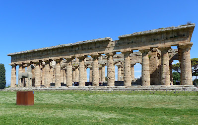 Sono tra i più importanti reperti archeologici rinvenuti dall’antica Magna Grecia e tra i più apprezzati monumenti della civiltà Greca. Sono tre, tutti dorici e si trovano alle due estremità del Parco archeologico.“La Basilica” detto anche Il tempio di Hera, è il più antico dei tre grandi edifici e appartiene alla prima generazione dei grandi templi in pietra. Iniziato intorno al 560 a.C. periodo cruciale per la formazione dell’architettura greca, è l’unico tempio greco che si è conservato così bene. Mancano i frontoni e l’impianto non è ancora quello canonico; la sala interna è divisa da una fila di colonne centrali, come accade nelle antiche architetture in legno. Questo ha fatto sì che per molto tempo la sua funzione non fosse chiara e, ancora oggi, viene chiamato “Basilica”, anche se è ormai provato che era un edificio di culto. Ritrovamenti di materiali e iscrizioni suggeriscono che potrebbe trattarsi del tempio di Hera, protettrice degli Achei e sposa di Zeus.